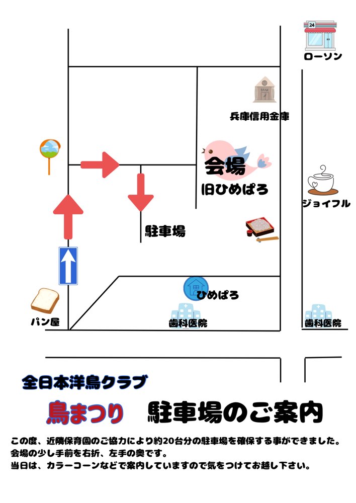 場所は、旧ひめぱろ少し手前を右折→住宅街少し進むと左手奥に駐車場です。当日はカラーコーン立てて案内します(^^)